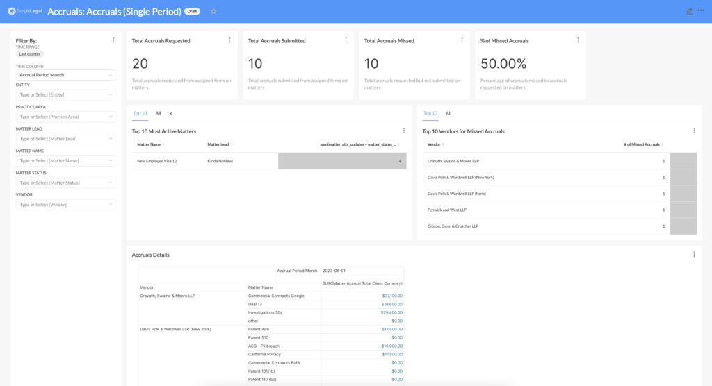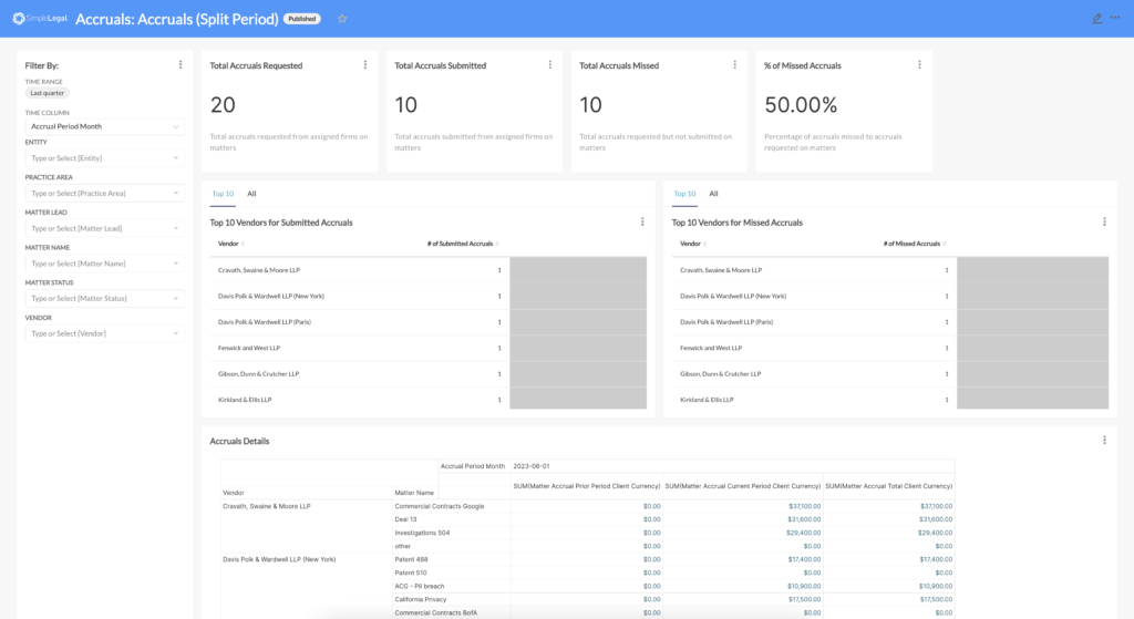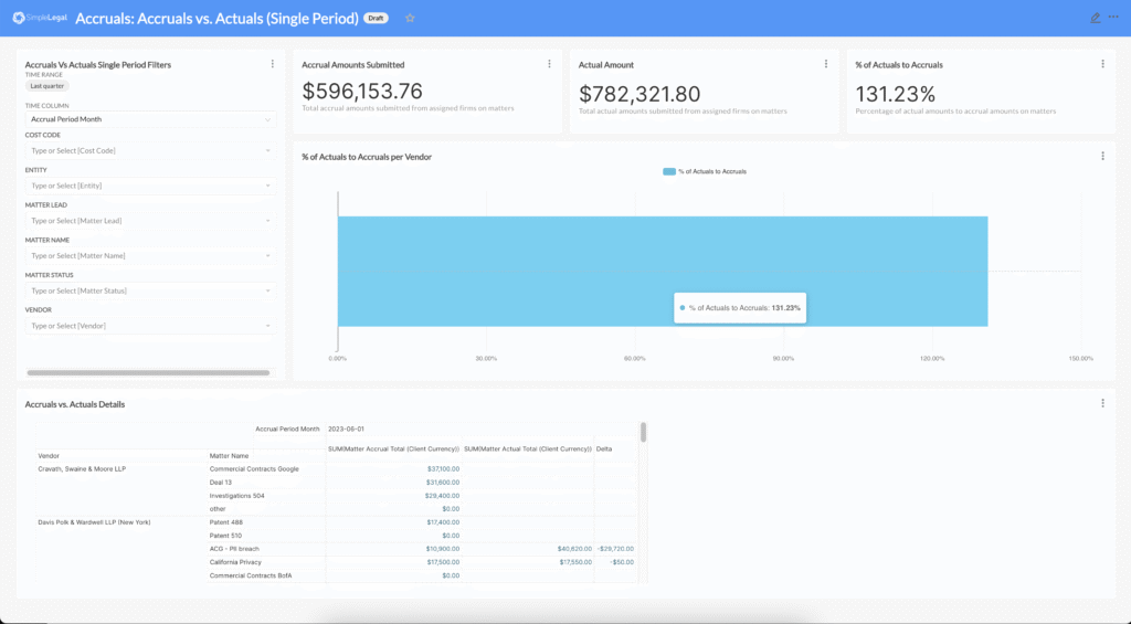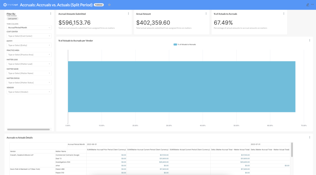 – Report on legal matter and spend data from a single source of truth