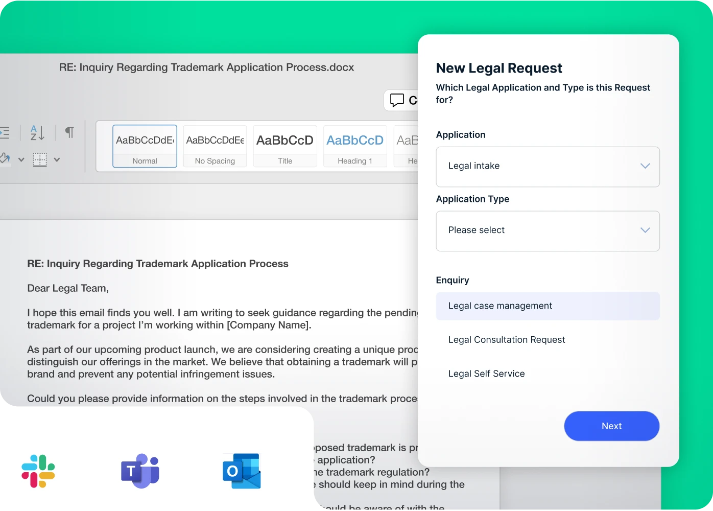 Every request is captured once, triaged, and routed where it belongs. No duplicates. No wasted steps. Giving Legal full visibility.