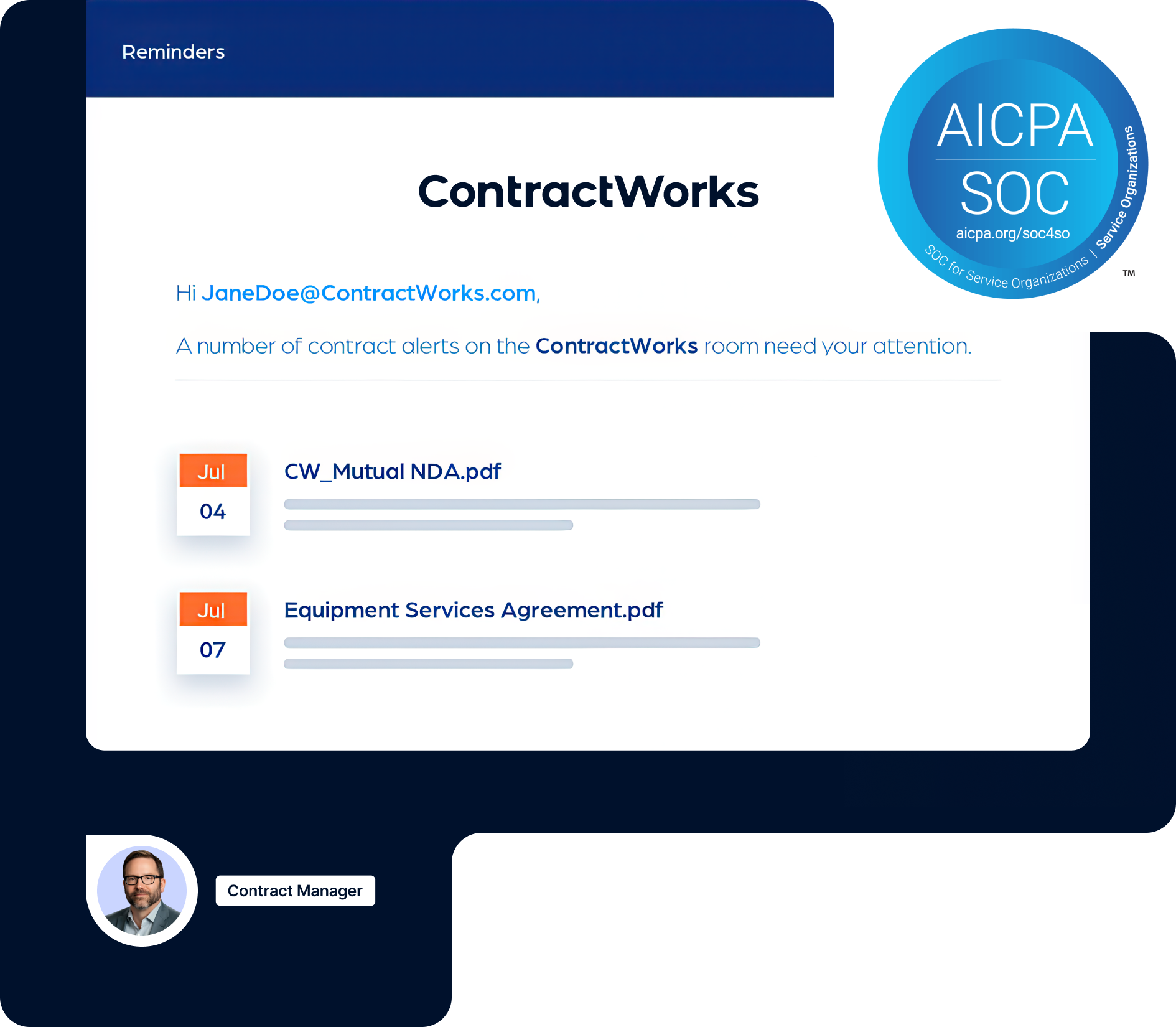 Along with AI-driven contract extraction and auto-tagging of key dates, obligations, and governing terms, ContractWorks provides more accurate reporting and ensures renewal dates are never missed.