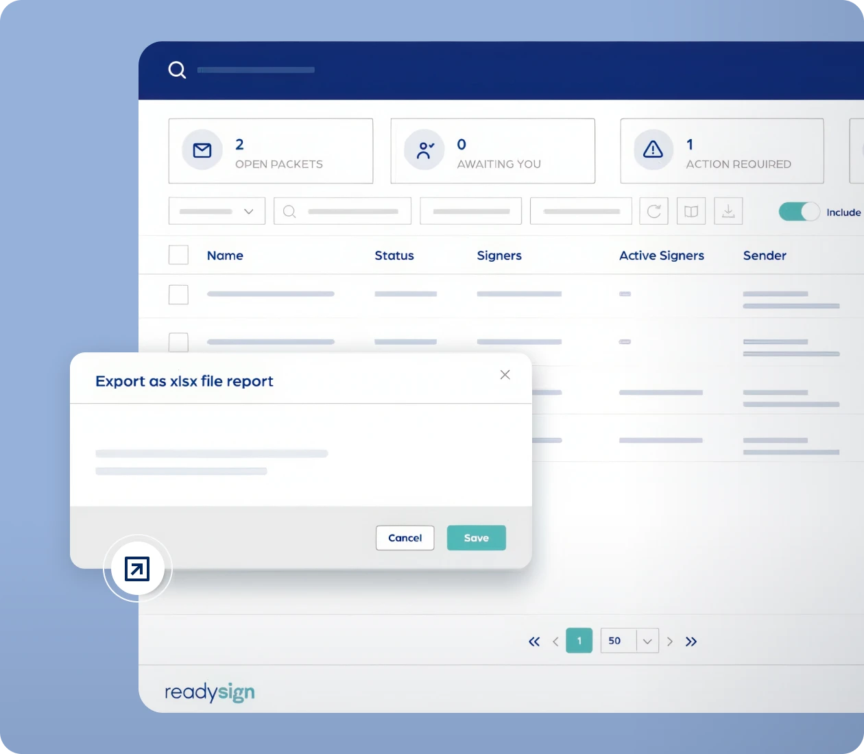 Maintain visibility of outstanding and completed documents in your one-stop hub to manage everything related to eSign. Quickly filter, view, and export key eSign data, send out packets, generate AnySign links, and cancel or remind signers about existing packets — all from one easy access location.